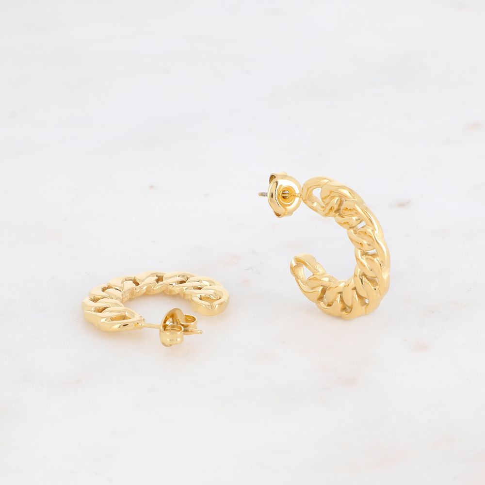 Boucles d'oreilles type créoles sous forme de maille ajourée.