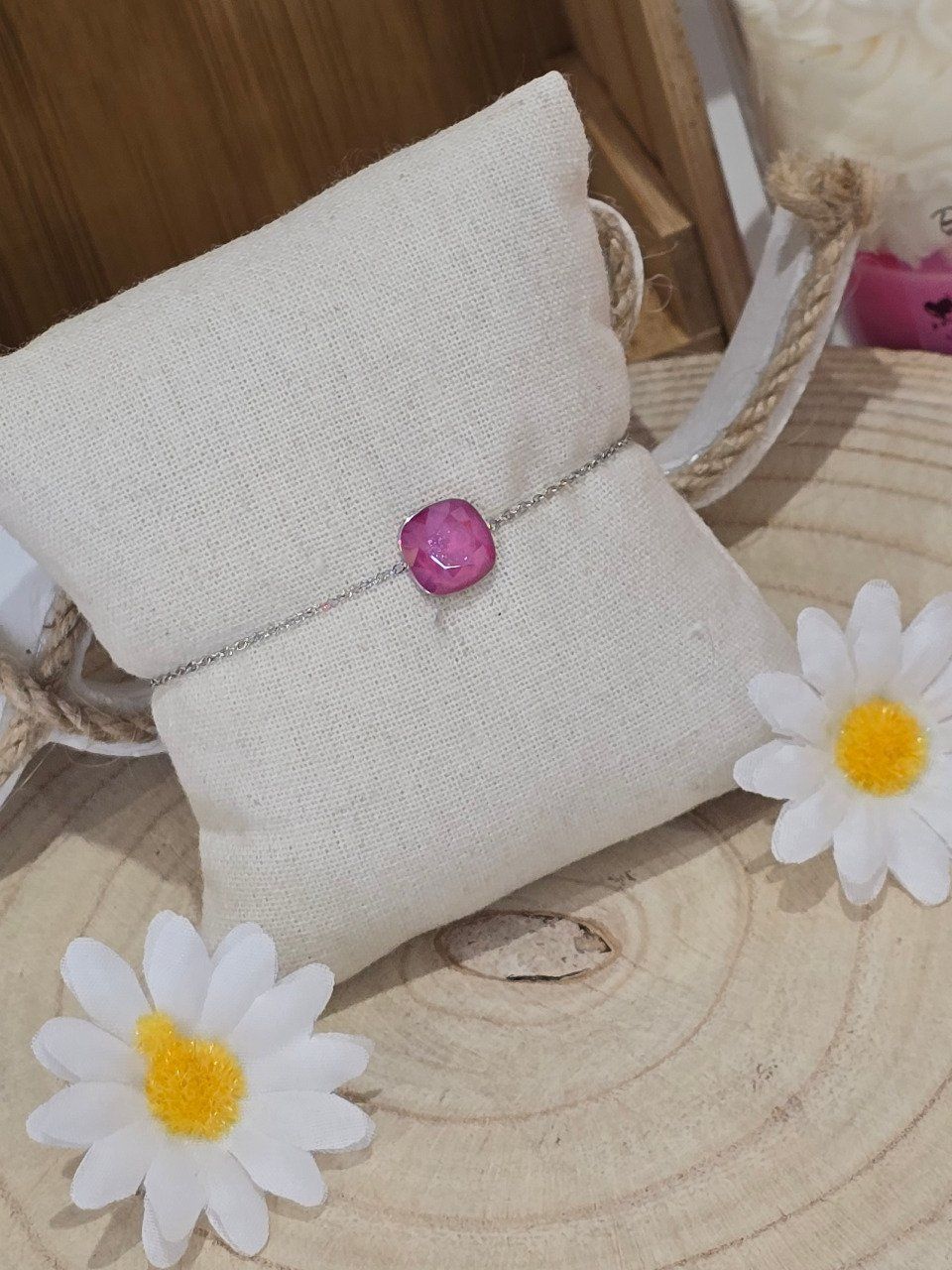 Bracelet en acier inoxydable, orné de cristaux taillés.