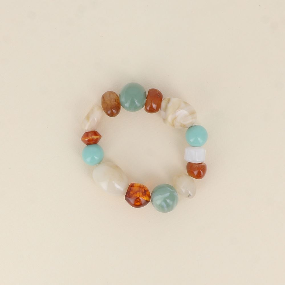 Bracelet élastique composé de perles en résine et rondelles en acier inoxydable.