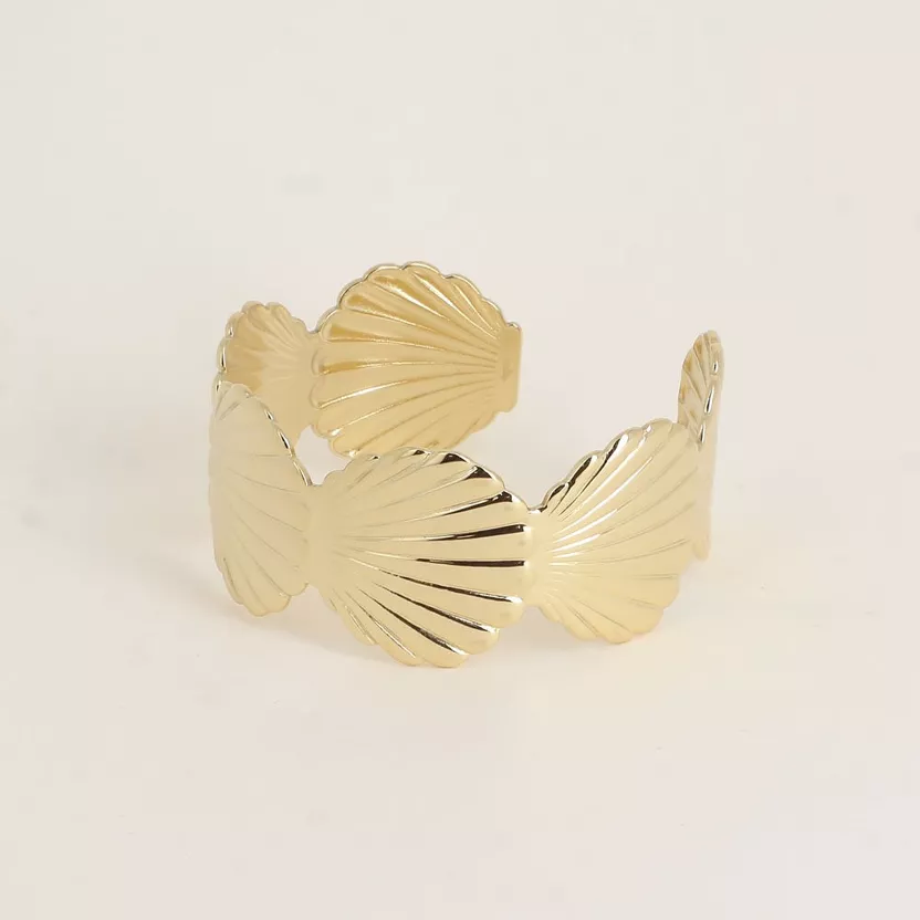 Bracelet type manchette en acier inoxydable composé de motifs coquillages.