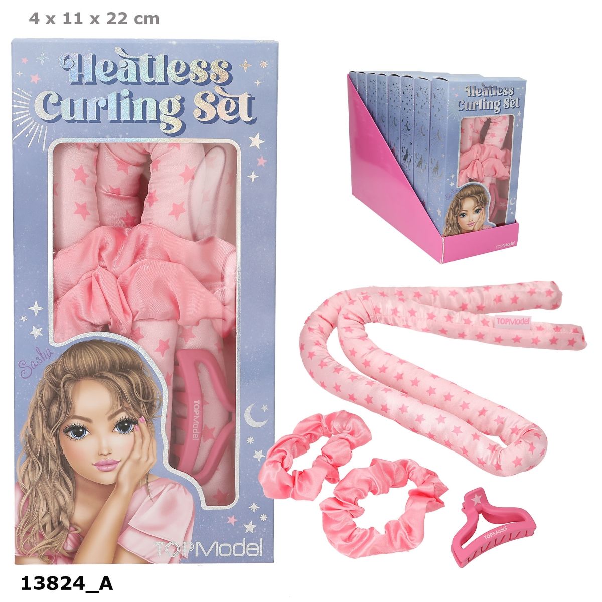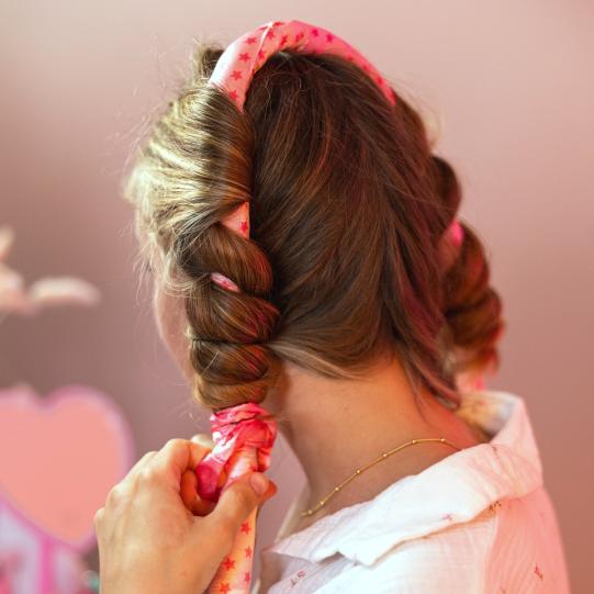Crée de magnifiques ondulations dans tes cheveux sans chaleur : ce set de modelage de boucles de TOPModel contient une grande papillote rose recouverte de tissu et orné d'étoiles, une pince à cheveux en plastique rose vif et deux scrunchies en satin rose vif. Il suffit d'enrouler les cheveux à l'aide de la papillote, de fixe cette dernière et de l'enlever après plusieurs heures ou le lendemain matin. Dis bonjour à tes boucles !